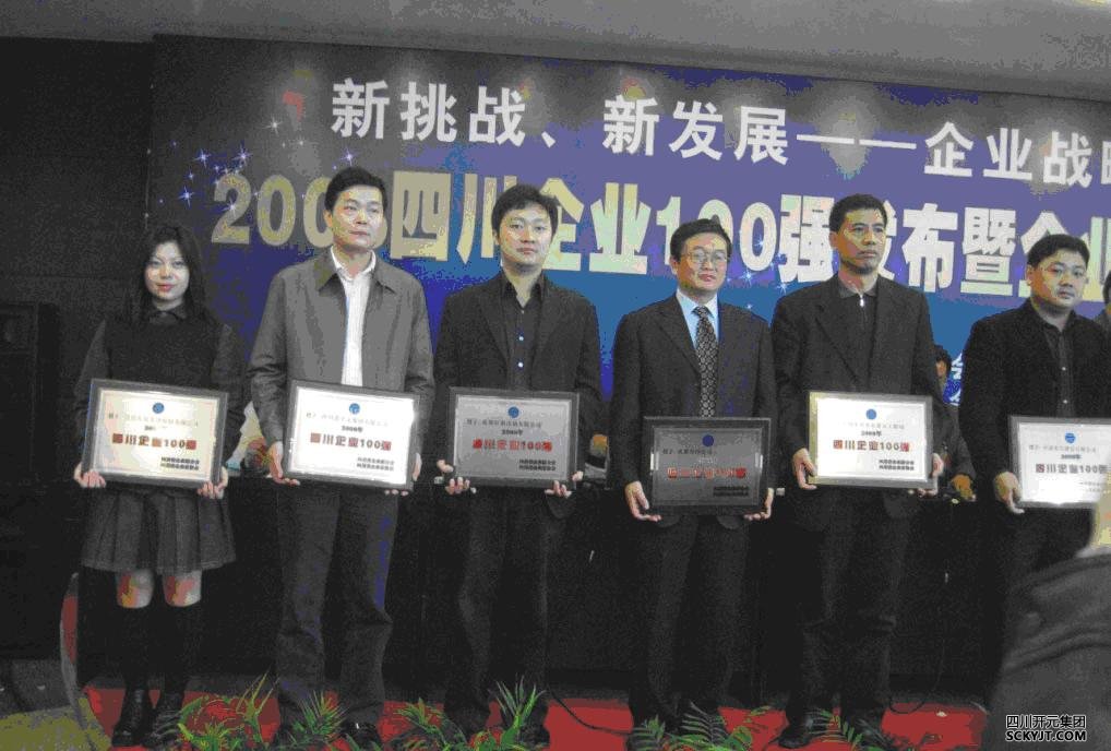 11月6日,2008四川企業(yè)百強發(fā)布暨四川企業(yè)發(fā)展峰會在成都市隆重召開。四川省企業(yè)聯(lián)合會、四川省企業(yè)家協(xié)會向社會公布了2008四川企業(yè)100強名單,開元集團連續(xù)3年入圍,名列第三十二位。集團副總裁譚昌敏代表開元集團領取銅牌。 “2008四川企業(yè)100強”是在四川省經(jīng)濟主管部門和中國企業(yè)聯(lián)合會的指導下,按照國際通行方式,通過對企業(yè)2007年度的銷售收入、利潤、所有者權益、資產(chǎn)總額、研發(fā)費用等指標進行綜合分析評選出來的。開元集團在銷售收入、利潤率、資產(chǎn)總額等子榜單上,均位列川企100強前列。其中利潤增長率位居18位,資產(chǎn)增長率位居12位。四川企業(yè)100強的評選,為四川省經(jīng)濟工作提供了客觀的參考依據(jù),對“工業(yè)強省”戰(zhàn)略和實施大企業(yè)大集團培育計劃具有重要指導意義。 大會以“新挑戰(zhàn)、新發(fā)展——企業(yè)發(fā)展戰(zhàn)略轉(zhuǎn)型”為主題,對企業(yè)發(fā)展進行了深度剖析和點評,推出了《四川企業(yè)發(fā)展報告(2008)》,該報告對大企業(yè)大集團的發(fā)展具有重要參考價值。(左二為集團副總裁譚昌敏代表集團領取獎牌)