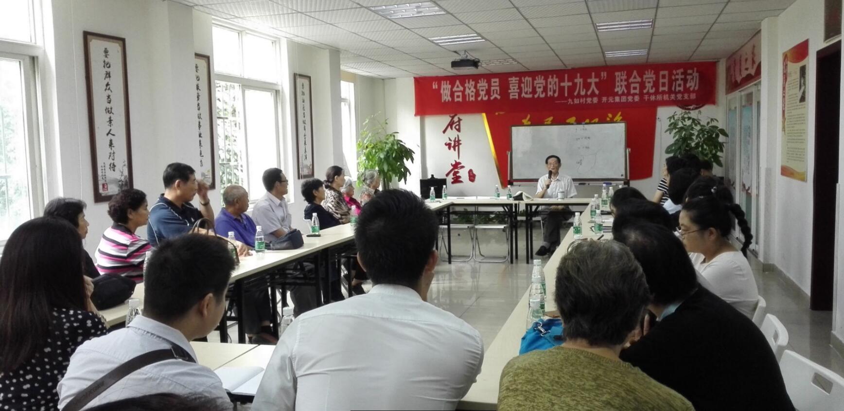 為迎接黨的十九大召開,在國慶、中秋雙節前夕,集團黨委與社區黨委本著“持續推動黨的教育,強化黨性認識”的目的和宗旨,于9月20日上午9:30,在九茹村社區二樓會議室,開展了“做合格黨員 喜迎黨的十九大”聯合黨日活動,包括集團黨委、匯力黨支部、開元礦業黨支部、社區四個黨支部黨員等共計50余人參加了此次活動。