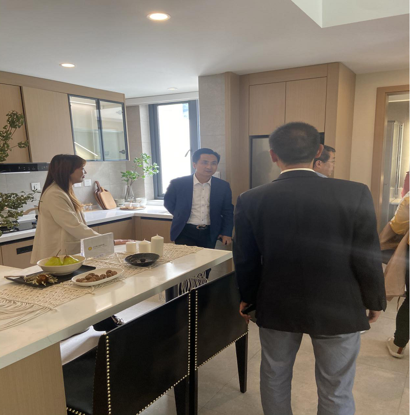 隨后,營銷工作人員陪同客人們前往樣板房實地考察。在對戶型、朝向、采光和環境等方面進行細致咨詢和了解后,苗主席當即決定在此置業,并選擇了心儀的居所。他表示,通過這兩天的考察,海花溝山青水秀景美,是不可多得的宜居之地,非常憧憬在此的自然生活。